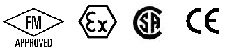 • Optional FM, CSA Approved Class I, Div. 1, Groups B,C & D, Class II, Div. 1,